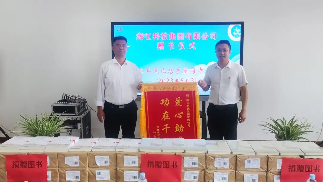 ? ? On behalf of Haijiang Group, Gao Qiying, secretary of the Party Branch, and Zhang Bojiang, deputy manager of the Enterprise Management Department, sent school bags, stationery, and other school supplies and more than 1,500 books such as "Walking Gaze", "Taste of Hometown" and "Bright Moon Full of Cangzhou" to the students in Cangzhou.