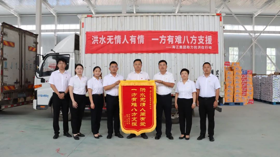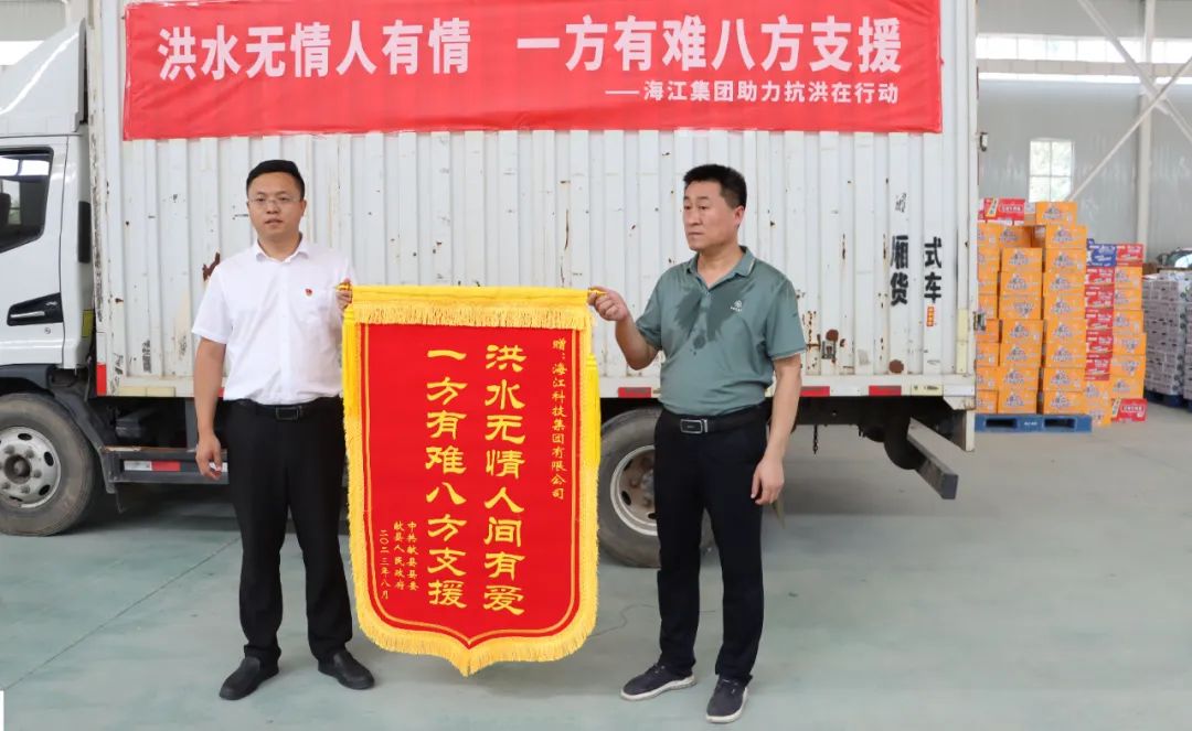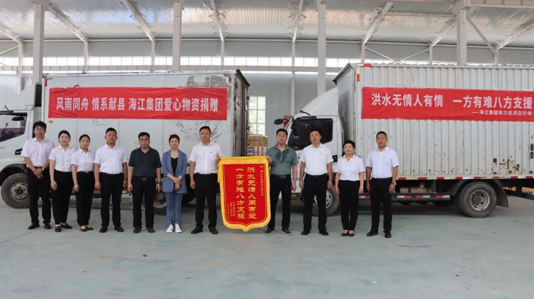 ? ? Affected by Typhoon Doksuri, Xian County, Cangzhou has suffered heavy rainfall recently, and 29,000 people from 48 villages in the floodplain were urgently relocated.?On August 9, Haijiang Group took the first time to support the flood-affected areas by donating medicines, emergency supplies and other relief materials, demonstrating its corporate commitment through practical actions.
