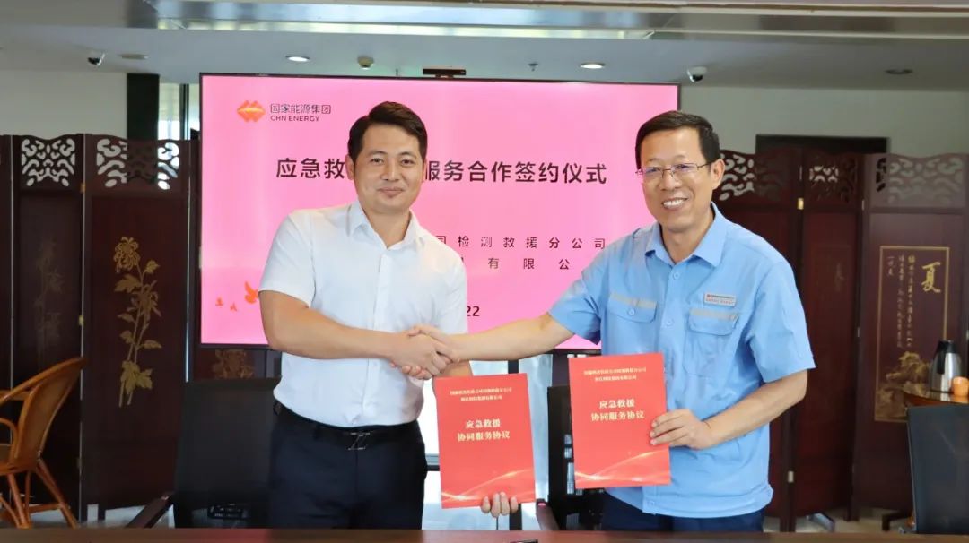 Testing and Rescue Branch of Guoneng Shuohuang Railway Development?Company, and Chu Long, general manager of Haijiang Group, signed the "Emergency Rescue Cooperative Service Agreement" on the spot and paid a visit to the branch.